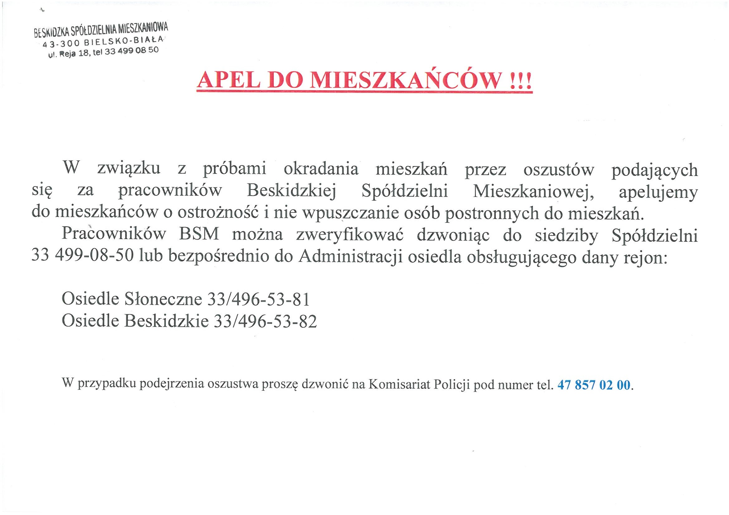 APEL DO MIESZKAŃCÓW